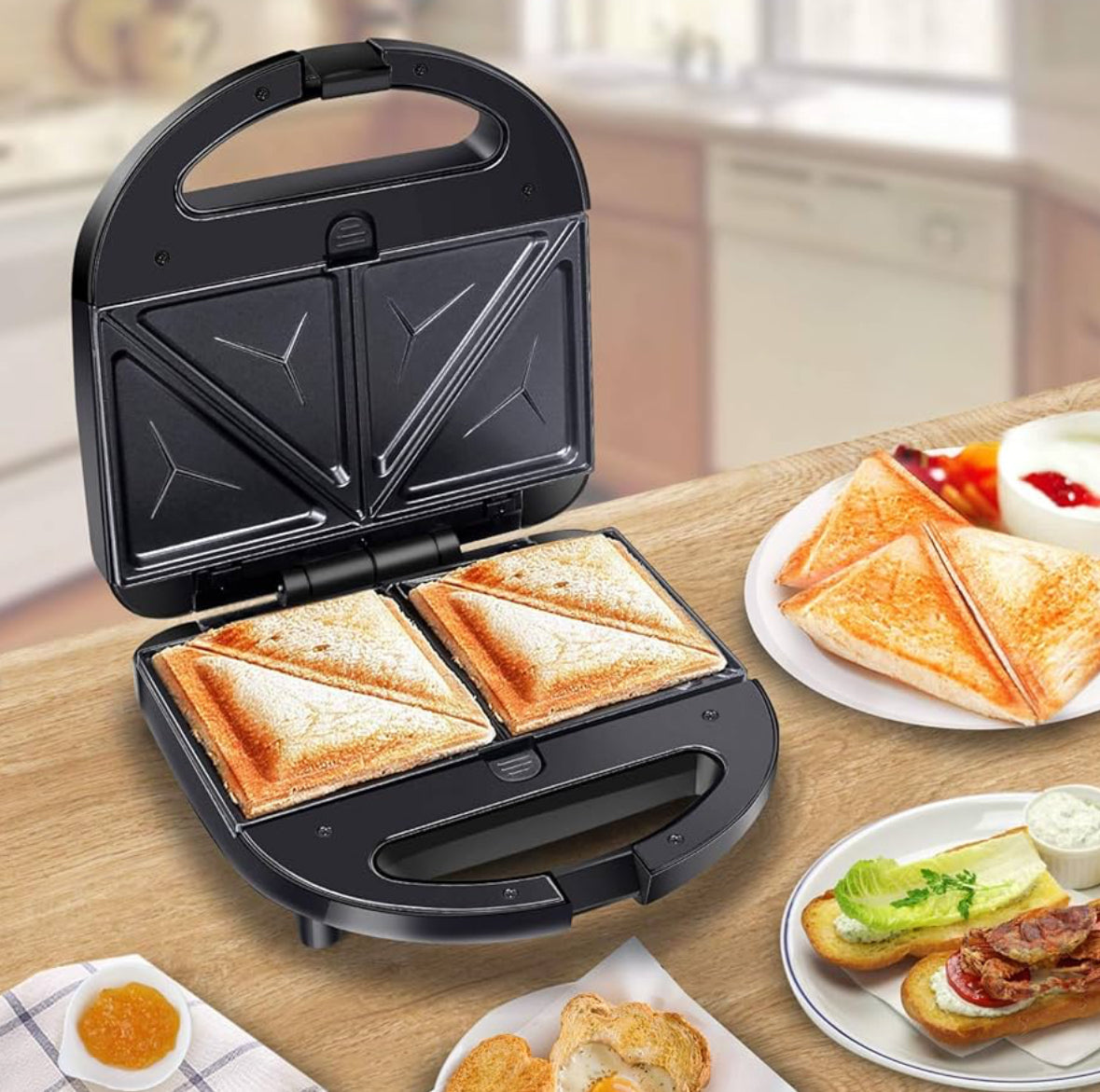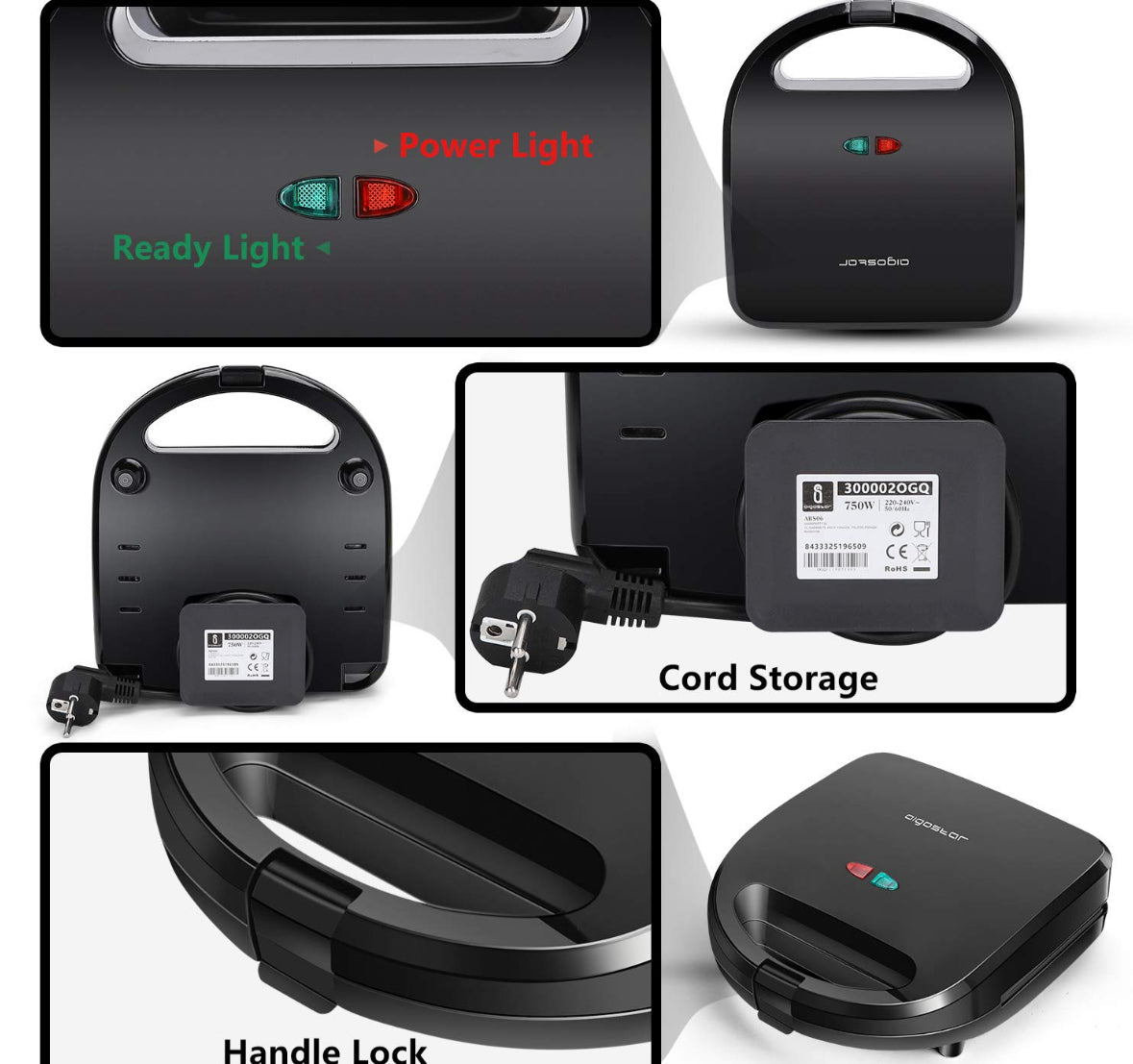 Aigostar ALAN - Sandwichera 750W : Sandwichera Eléctrica. 3 Placas Antiadherentes e Intercambiables. Indicador Luminoso,Termostato.