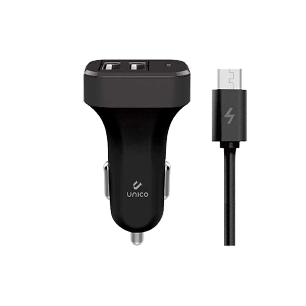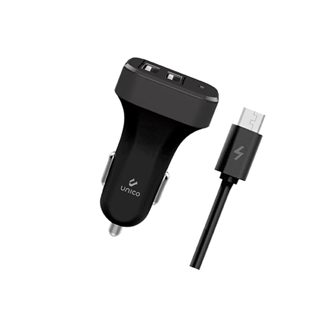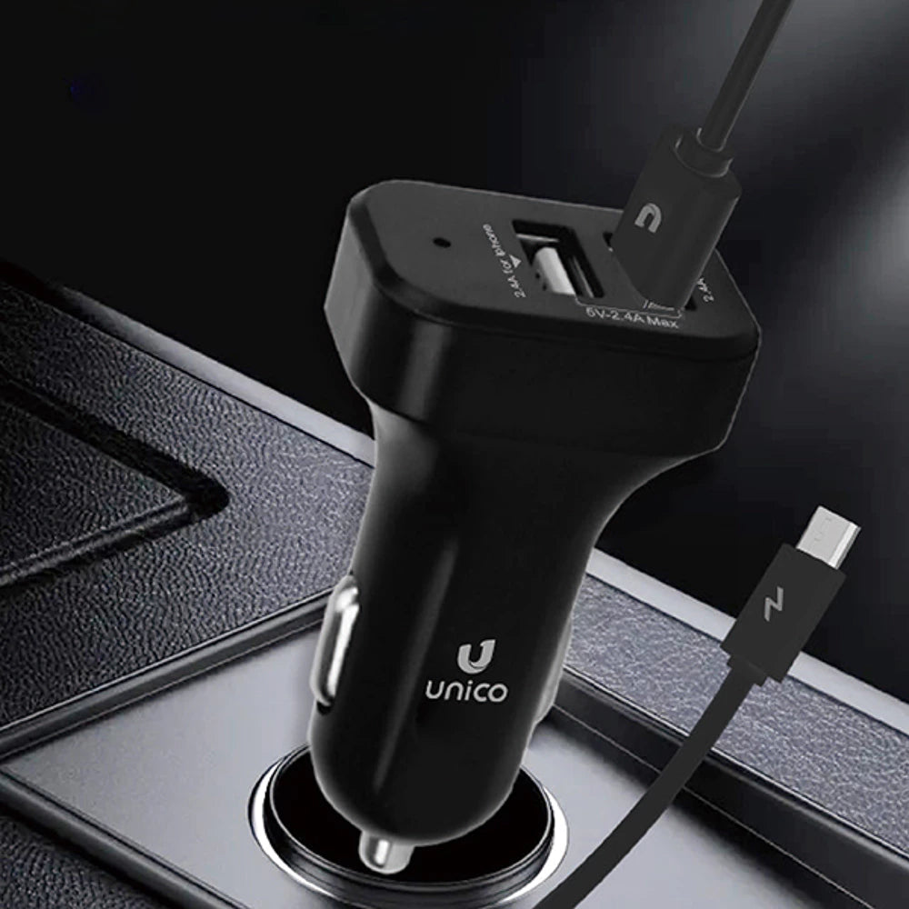 Cargador de coche Dual 2.4A con cable Micro USB - Negro