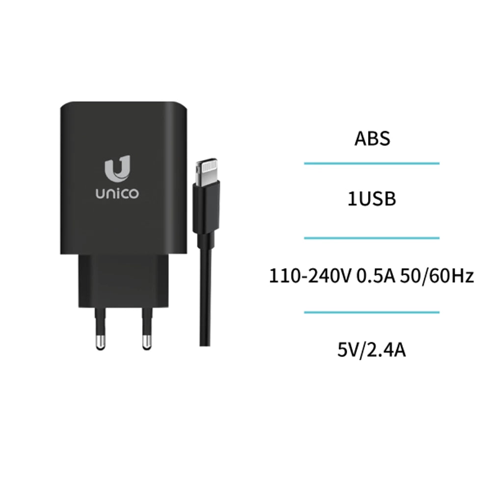 Cargador IPhone USB 2.4A 110V-240V con cable USB a Lightn