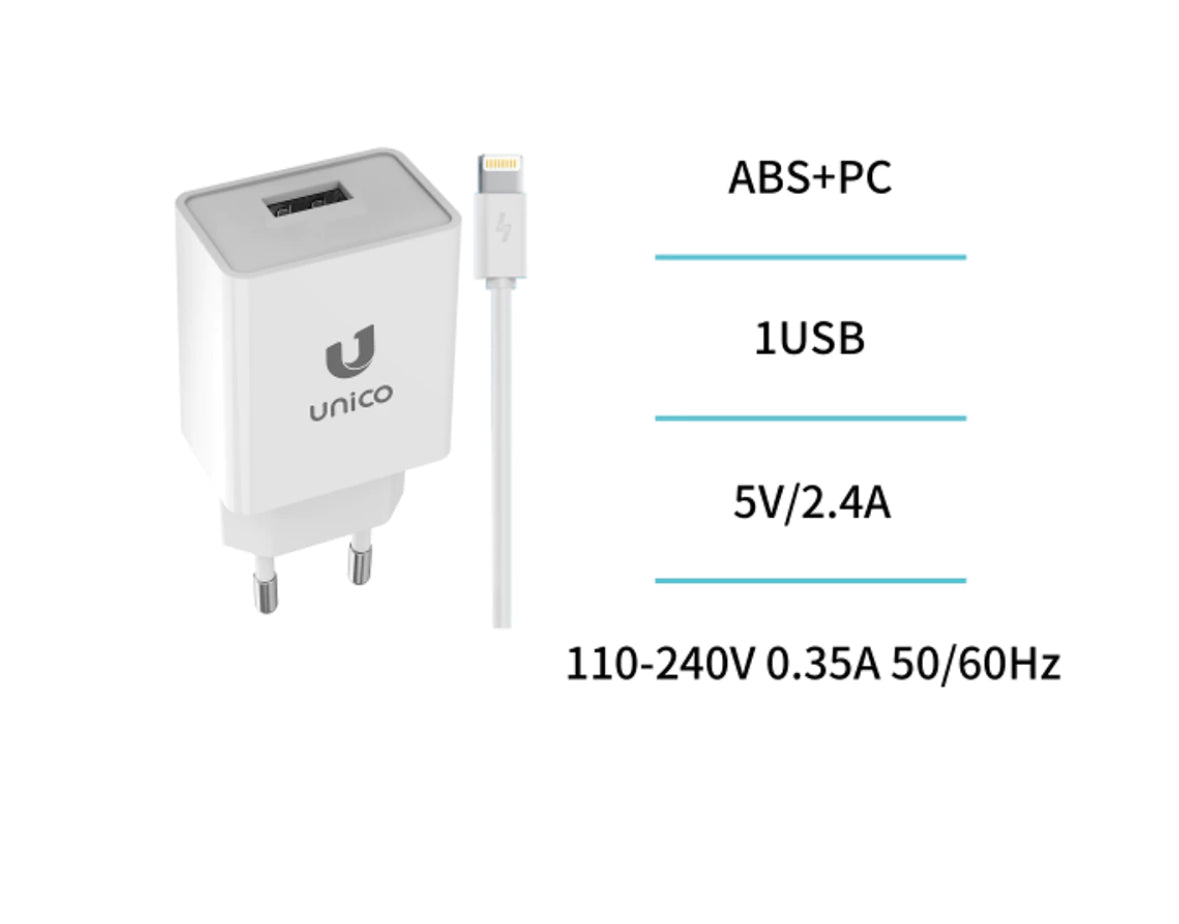 Cargador USB 5V 2.4A con cable USB a Lightning - Blanco iPhone carga rápida