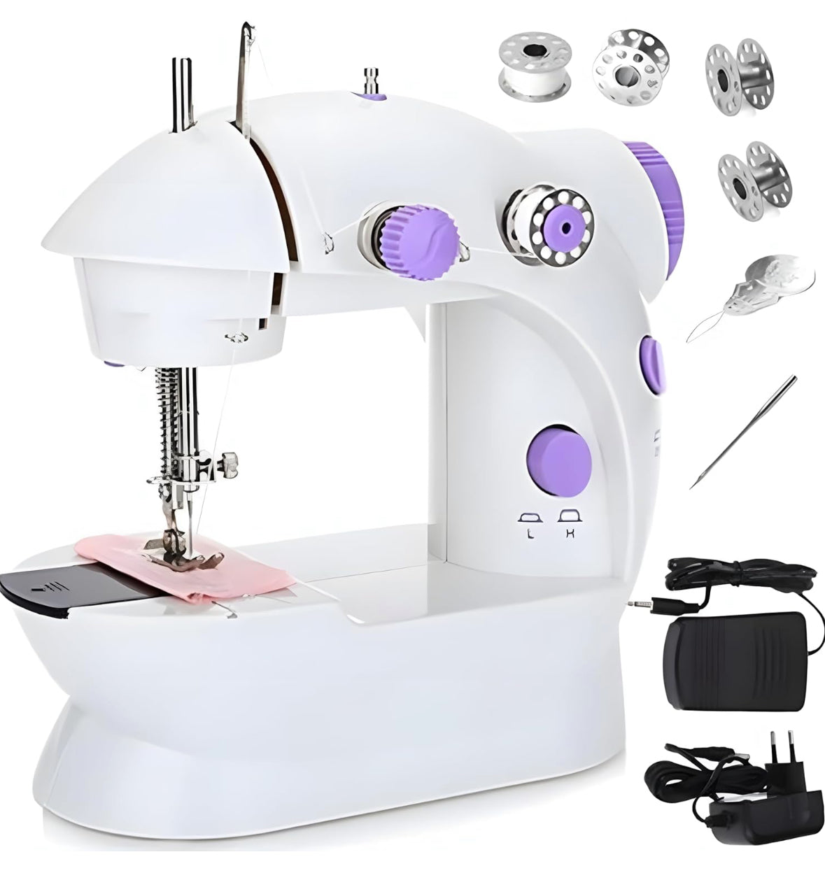 Máquina De Coser Portátil, Mini Máquina De Coser Eléctrica Portátil, 230 V Con 2 Velocidades Y Pedal De Pie, Aguja De Recambio