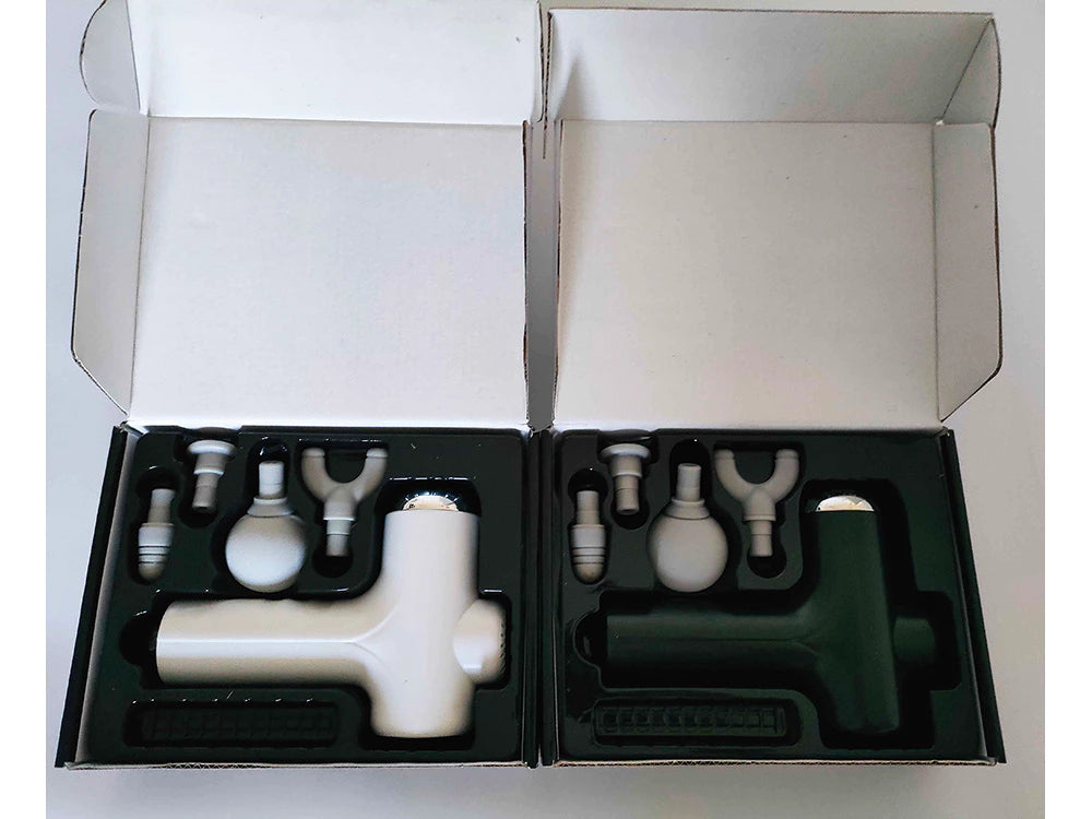 Pistola de masaje para espalda, cuerpo y piernas, potente masajeador, pistola de masaje, 4 puntas Especificaciones técnicas: Código de producto: 24504 Fabricado con materiales de alta calidad Botón ON/OFF Indicador de velocidad, 6 niveles de intensidad de masaje, 4 puntas diferentes, Dimensiones sin puntas: 17 cm x 12,5 cm x 4,5 cm Fuente de alimentación: recargable Carga mediante cable USB-C Potencia del dispositivo: 30 W El producto tiene certificación CE Colores disponibles: Debido a Embalaje aleatorio de la mercancía por parte del fabricante en embalaje colectivo, la mercancía se envía en una mezcla de colores. No es posible seleccionar el color. Blanco Negro El juego incluye: Pistola masajeadora nueva, 4 puntas reemplazables, cable USB, embalaje original