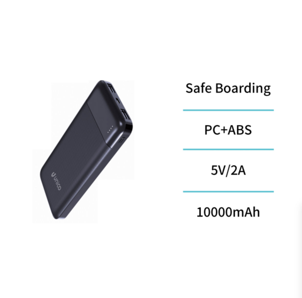 Power Bank 10000mAh con puerto 2 USB, Tipo-C y Micro USB carga rápida – Negro