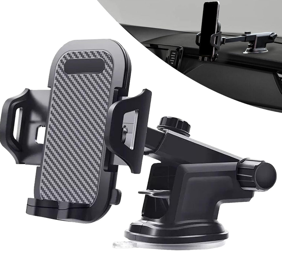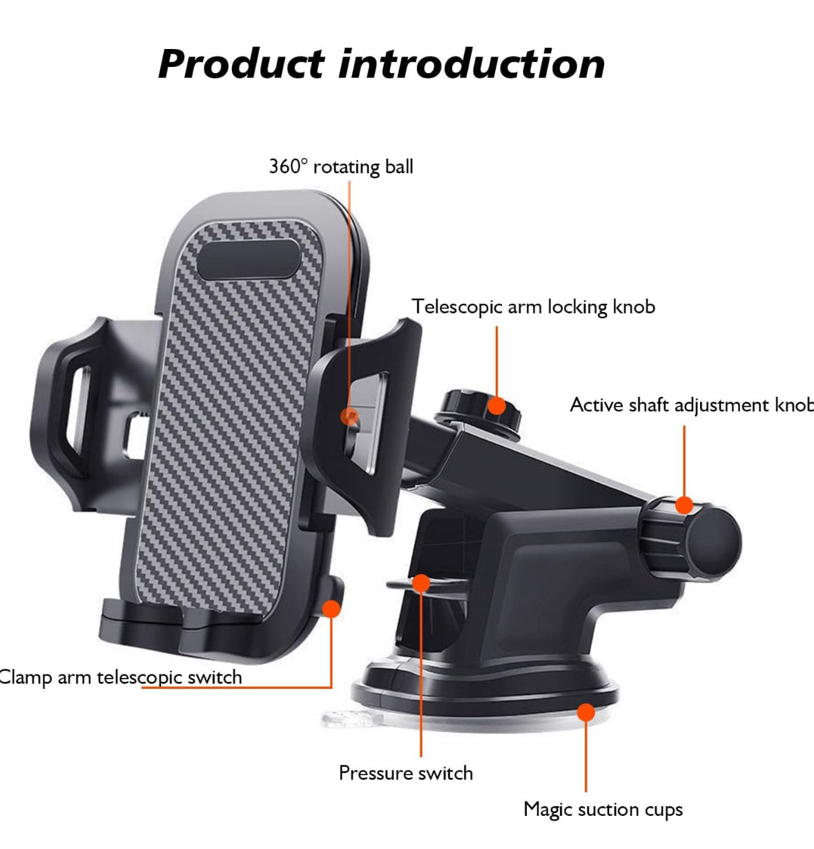 - Diseño único: adopta un diseño de ventosa, el principio de vacío, la succión es mayor, no se caerá, puede transportar fácilmente 7.7 lbs de artículos sin caerse. Se puede adsorber en la plataforma del instrumento y en el parabrisas delantero. Al mismo tiempo, puede ser libremente retráctil. Almohadillas de silicona flexibles integradas, antiarañazos. El panel de soporte está hecho de fibra de carbono, que es firme y duradera.