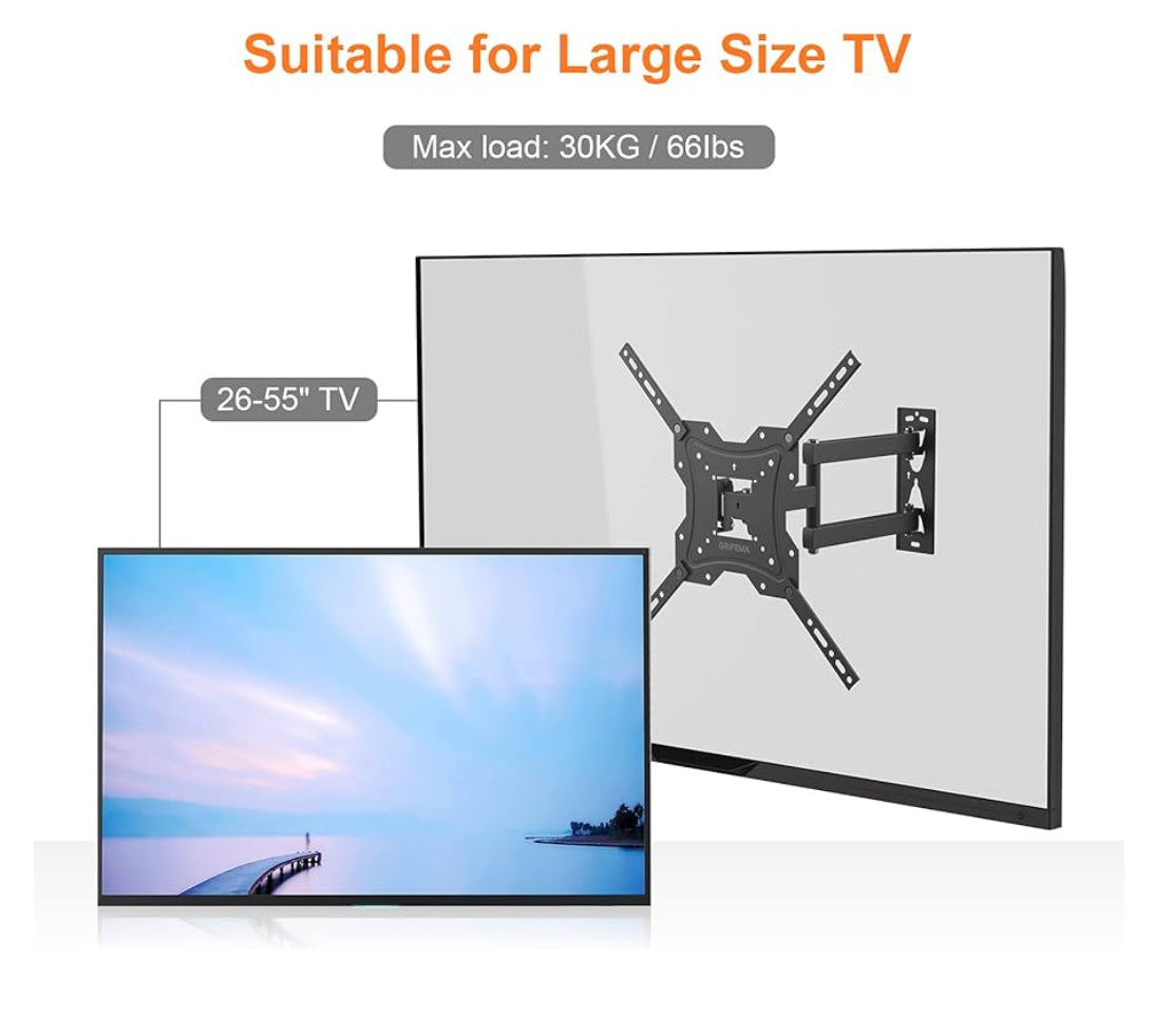 Soporte de TV Pared para TV 26-55", Girar, Inclinar, Extender y Retraer para Mejor Ángulo de Visión, Carga hasta 30kg, MAX VESA 400x400mm