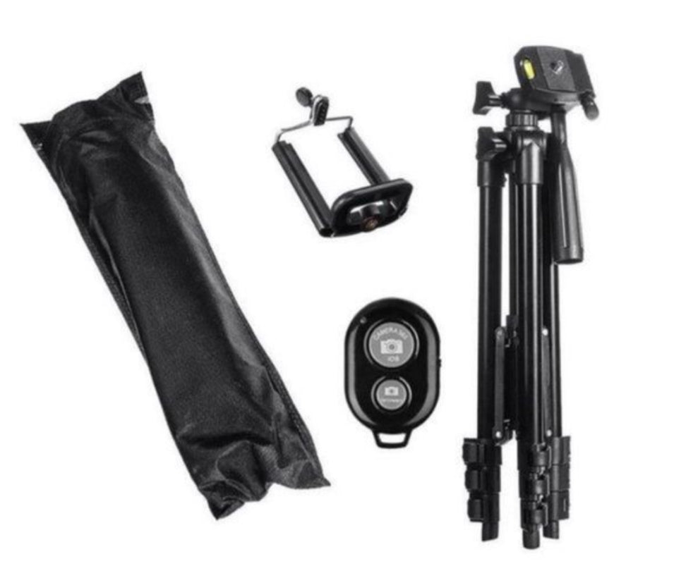 Trípode movil desplegable hasta 3 alturas (106 cm teléfono incluido ) con mando bluetooth y bolsa de viaje
