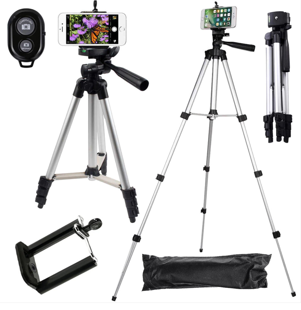 Trípode movil desplegable hasta 3 alturas (106 cm teléfono incluido ) con mando bluetooth y bolsa de viaje
